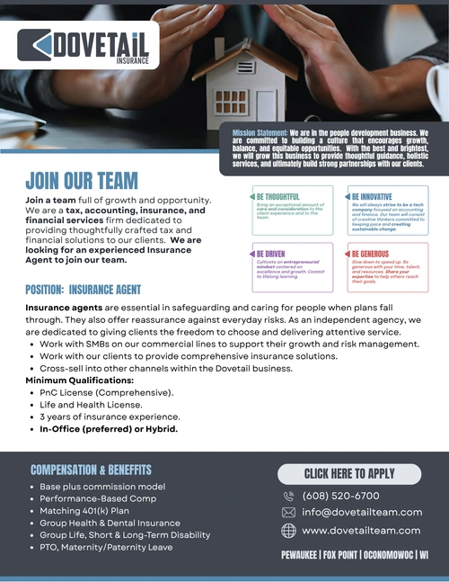 Dovetail, LLC is committed to providing equal opportunity in all aspects of employment. We do not discriminate against any applicant or employee on the basis of race, color, religion, sex, national origin, age, disability, or any other protected characteristic. We strive to ensure a welcoming and inclusive environment for all.